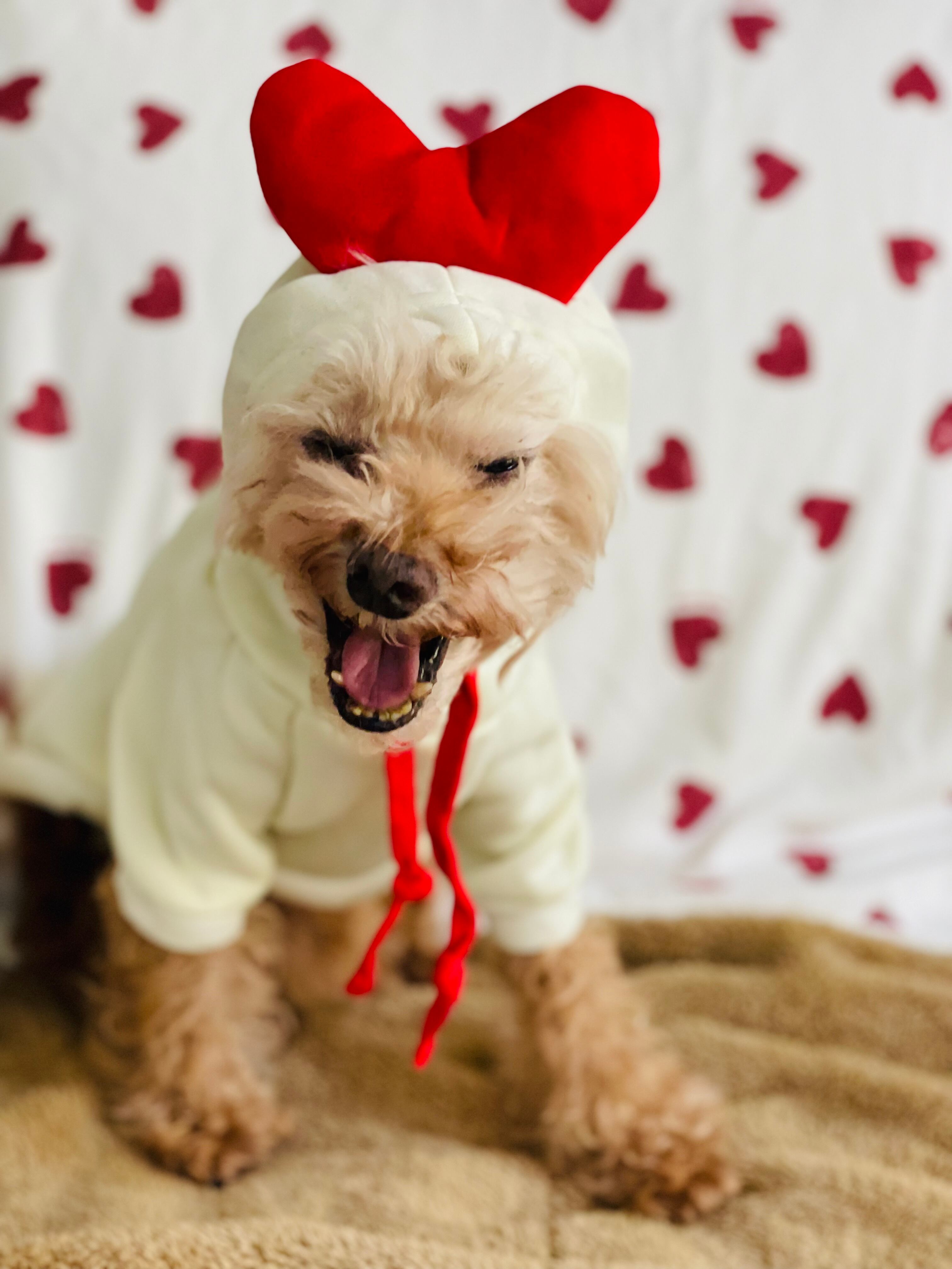 ワンコが着ていたハートパーカー。